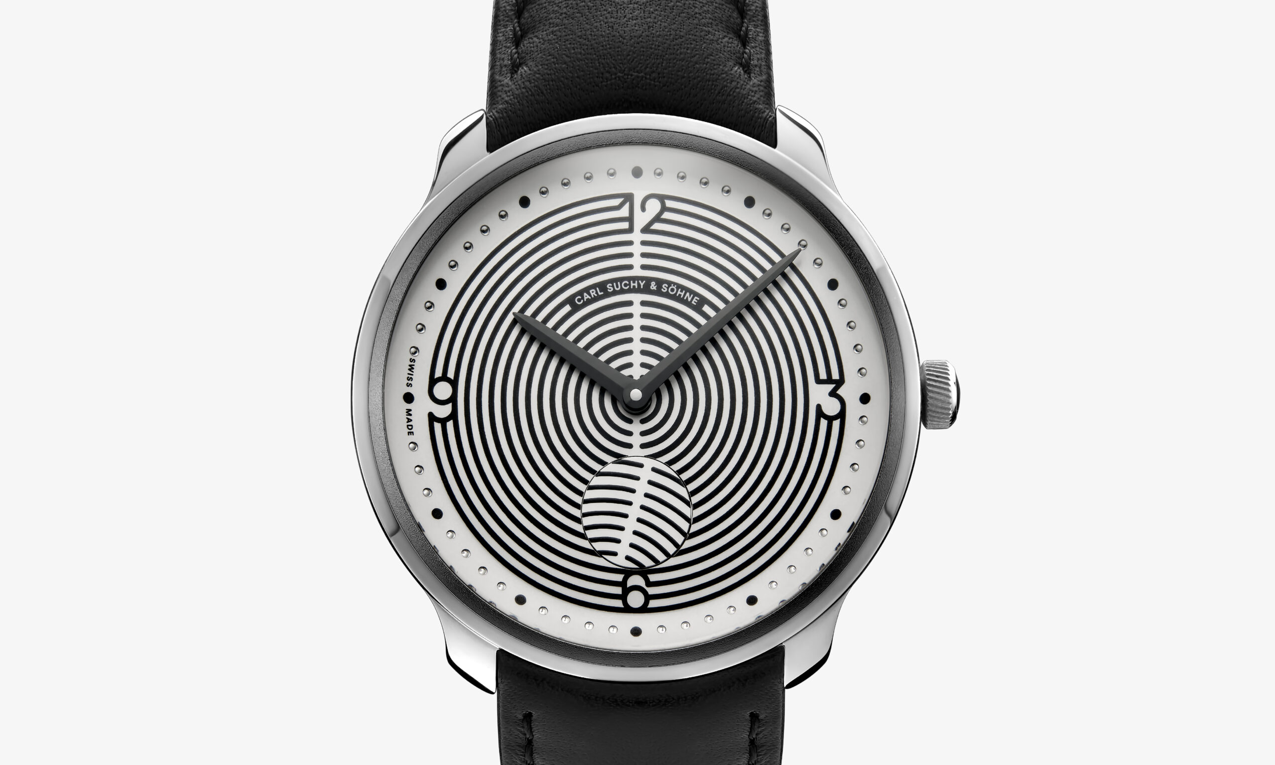 Hours, minutes, Carl Suchy & Söhne “Waltzing Disc” at 6 o’clock